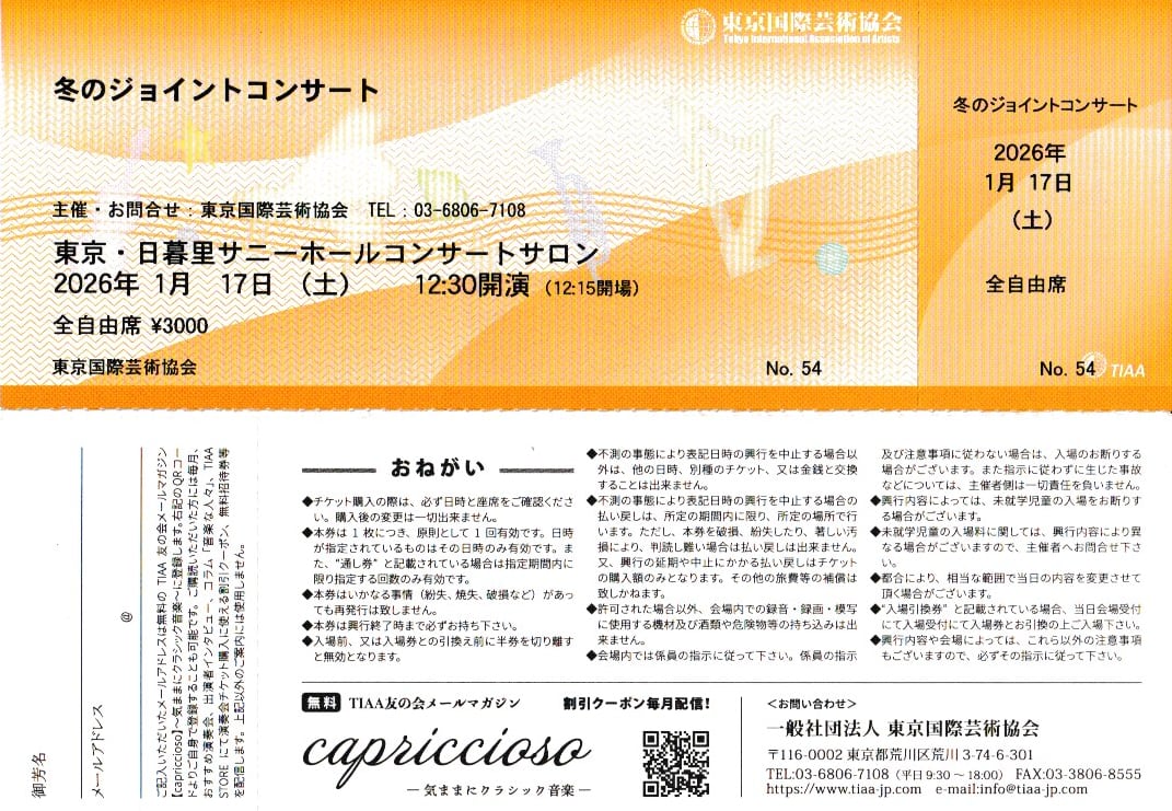 冬のジョイントコンサート 1月17日(土) 声楽・ピアノ・ヴァイオリンなど